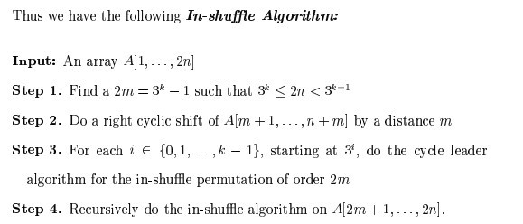 //时间复杂度O(n),空间复杂度O(1),数组下标从1开始,调用perfect_shuffle3